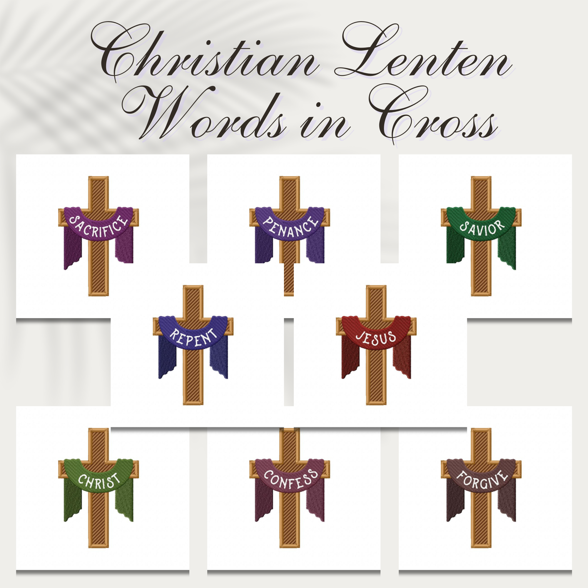 Christian Lenten Word Cross Stitched Embroidery Design Pack for ONLY $5