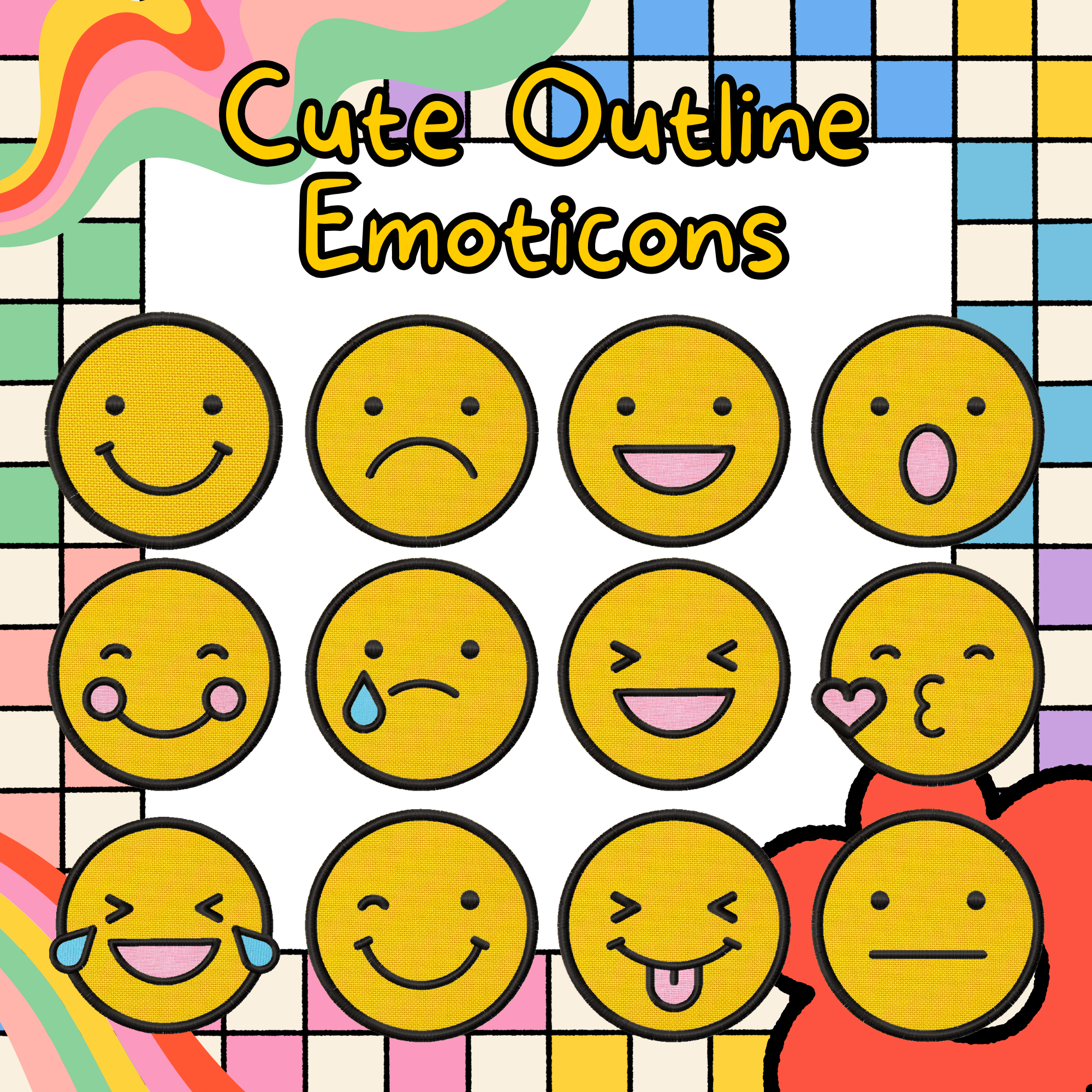 Cute Outline Emoticons Stitched and Appliqué Embroidery Design Pack for ONLY $5