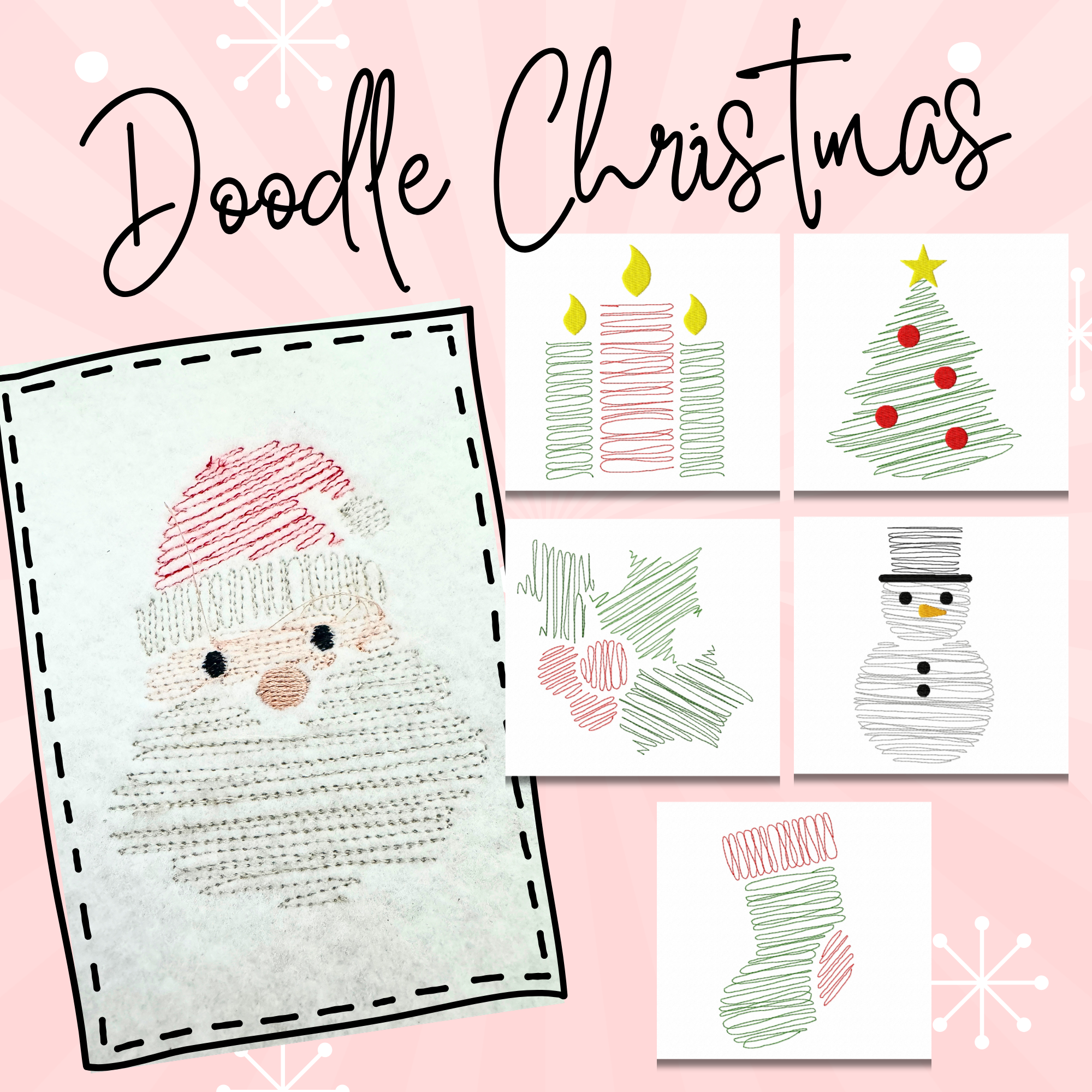 Doodle Christmas Stitched Embroidery Design Pack for ONLY $5