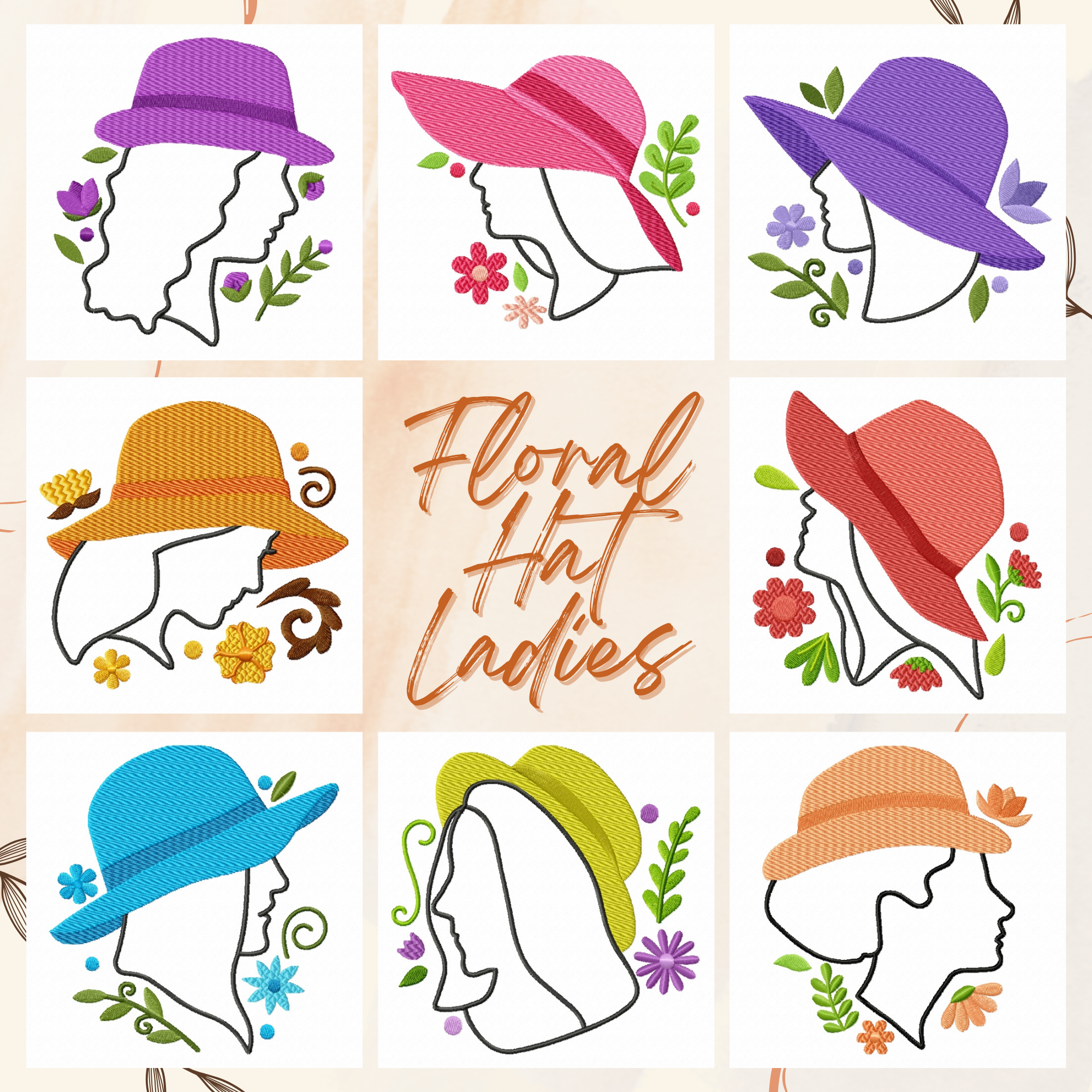 Floral Hat Ladies Stitched Embroidery Designs 8 Designs Included