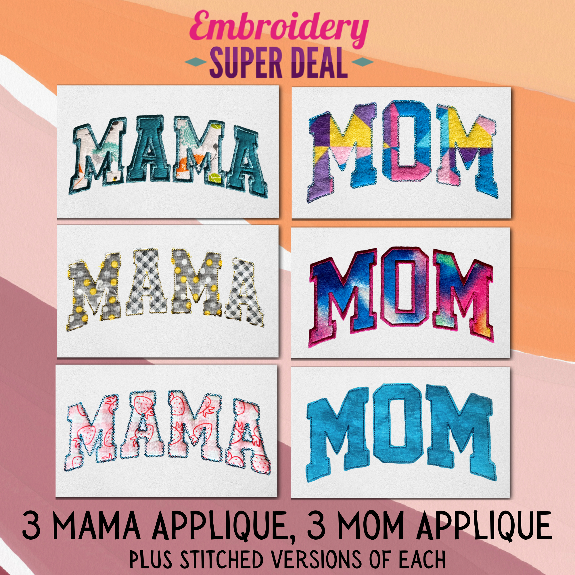 Mom and Mama Appliqué and Stitched Embroidery Design Pack for ONLY $5