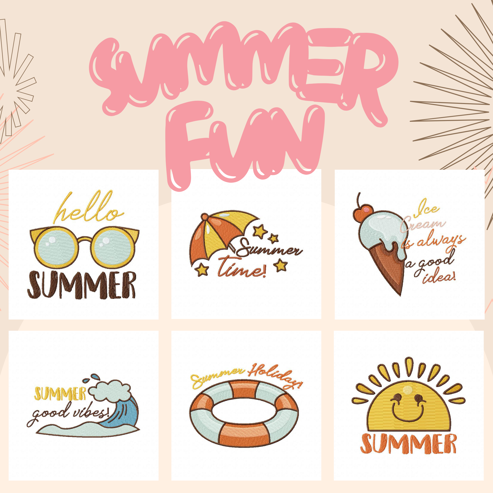 Summer Fun Stitched Embroidery Design Pack for ONLY $5