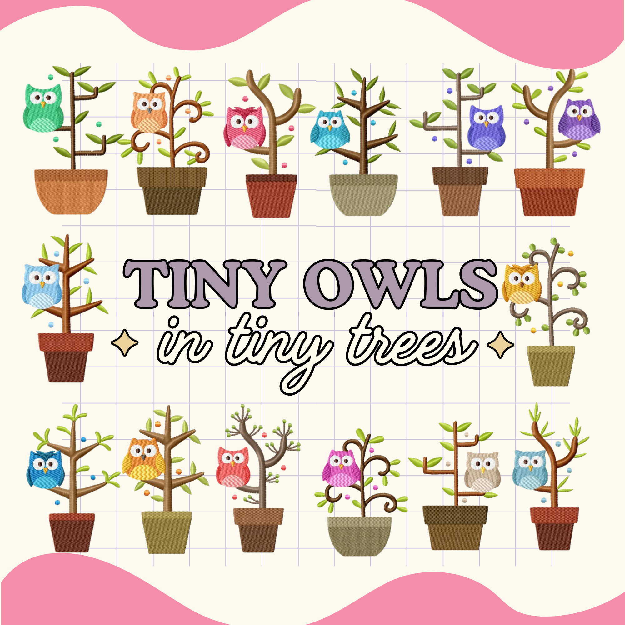 Tiny Owls in Tiny Trees Stitched Embroidery Design Pack for ONLY $5